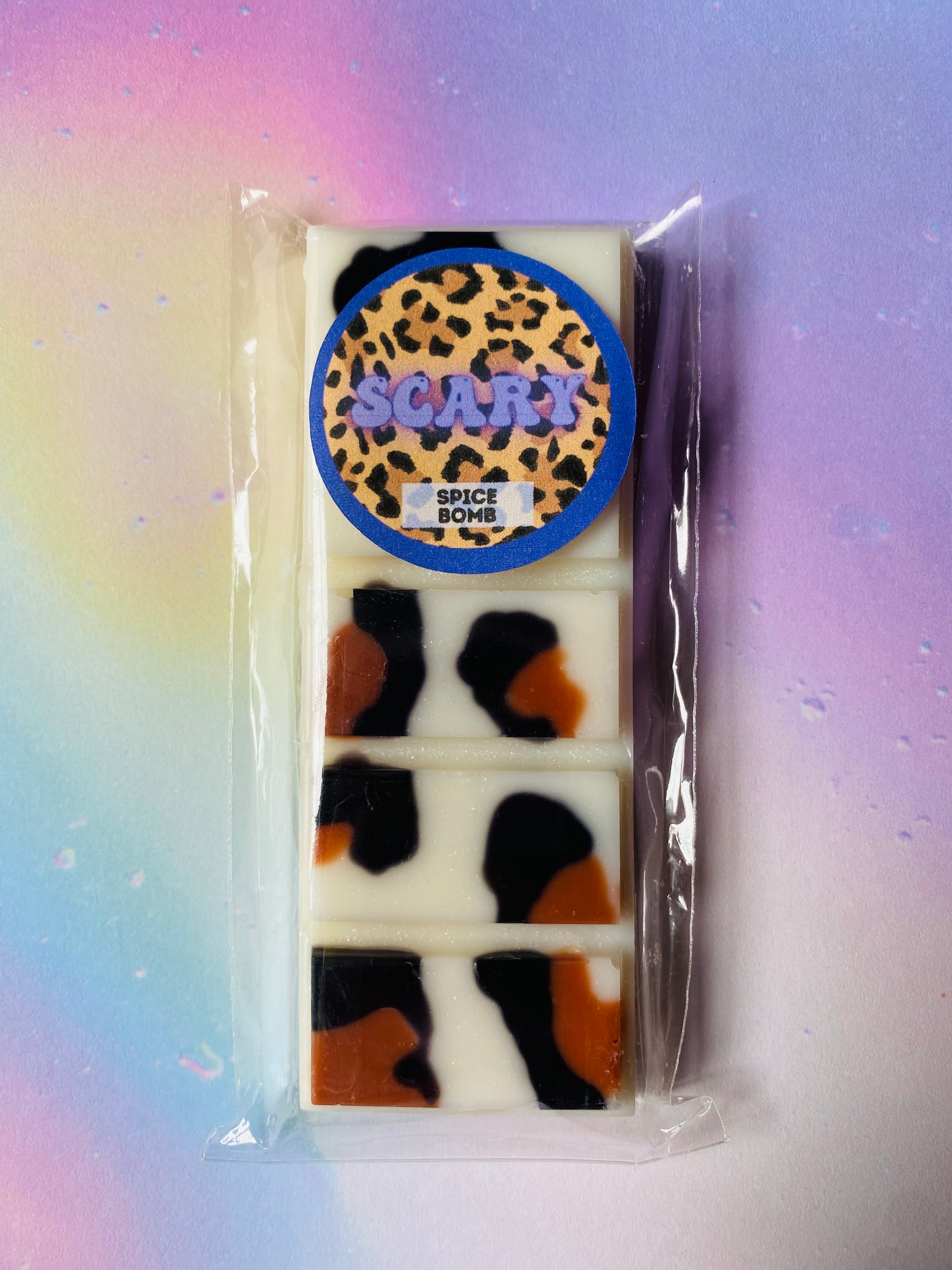 Scary – Spicy Bomb: a fiery, fresh blend of chili, tobacco, bergamot & grapefruit with a fierce leopard print design.